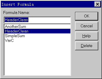Crystal Reports 4.6版本提供一个独立的报表设计器。在这个报表设计器中,用户可以设计、修改和打印报表。插入公式的方式同插入数据库字段类似,选择菜单Insert|Formula Field项,这时会出现图1所示的对话框。这个对话框中将列出当前报表的所有公式。如果你想建立一个新的公式,可以为这个公式起一个新的名字。