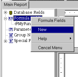 Crystal Reports 6.0没有独立的设计工具,要设计报表需要从Project菜单中选择Add ActiveX Designer|Crystal Reports 6.0启动Crystal Reports Expert。在默认情况下,Crystal Reports Expert将建立一个Crystal Reports报表并建立一个窗体用来预览和打印报表(图3)。为了建立一个新的公式,先从报表设计窗口的左侧的列表中选择Formula Fields右击(图4),从菜单上选择New就可以建立新公式。编辑和使用公式的步骤同Crystal Reports 4.6类似。