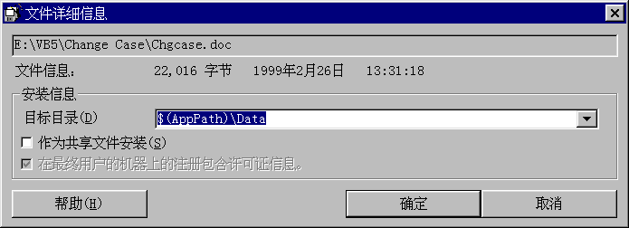 然后从文件列表中选择该文件,点击 “文件详细资料”按钮。在图3所示对话框中的设置目标路径。最好不要用绝对路径(如C:\MyProject)来指定安装位置,这样会给用户带来不便。安装向导使用宏来指示文件要安装的位置。这些宏只在安装程序中有效。宏的含义参见表1。如果要将文件放置在应用程序目录下的 \Data 子目录下,可以使用$(AppPath)\Data来指定安装路径。
